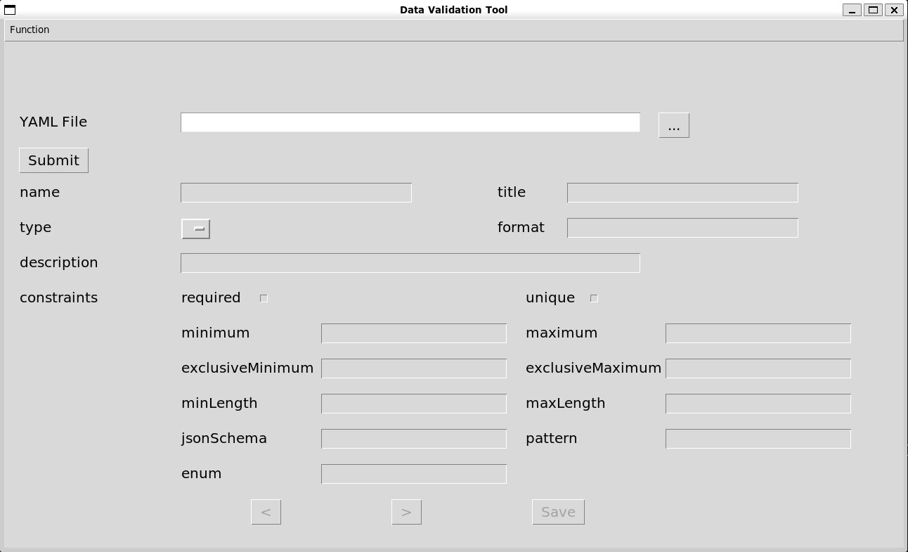 After selecting the dataset specification file to be modified, the data of each field will be loaded into the user interface, and the program will convert the file into a Python dictionary. Users can use the previous page and next page buttons to view and modify each property, and the program will save the changed back to the dictionary. When the user presses the Save button, the program will overwrite the data in the dictionary onto the original file.